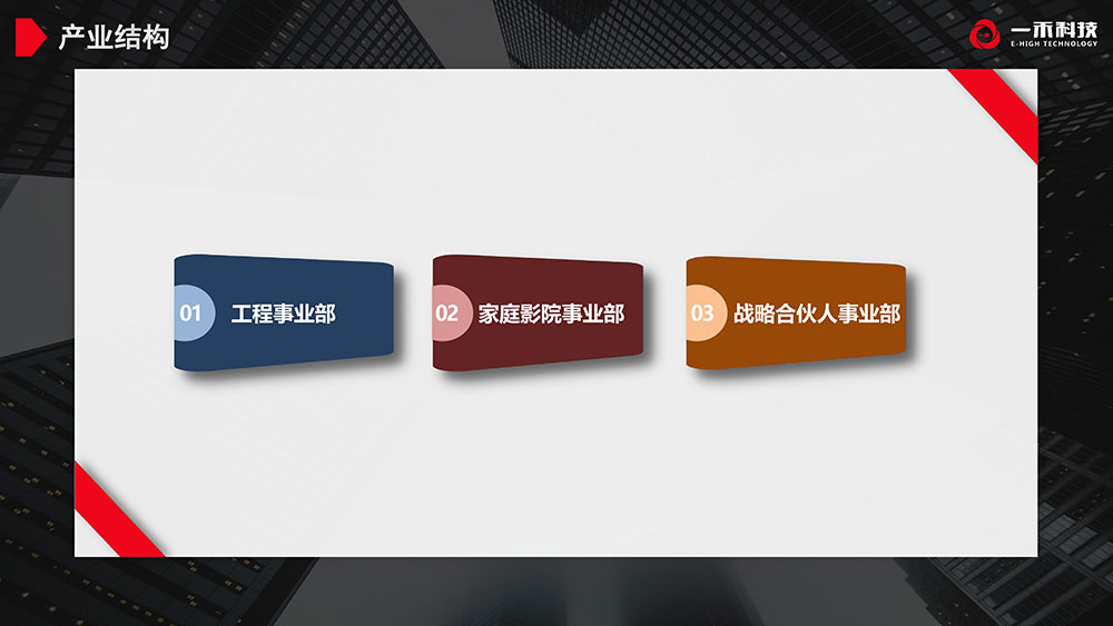 公司以自主研發(fā)、生產(chǎn)智能影院產(chǎn)品及音視頻系統(tǒng)集成為主導(dǎo),2004年創(chuàng)立工程事業(yè)部,主要為用戶(hù)提供專(zhuān)業(yè)音響擴(kuò)聲系統(tǒng)、大屏顯示系統(tǒng)、無(wú)紙化辦公系統(tǒng)、數(shù)字會(huì)議系統(tǒng)、遠(yuǎn)程視頻會(huì)議系統(tǒng)、可視化智能管控系統(tǒng)、舞臺(tái)燈光舞臺(tái)機(jī)械幕布系統(tǒng)、家庭影院系統(tǒng)等一系列音視頻集成解決方案。2009年創(chuàng)立英嘉尼影院事業(yè)部,英嘉尼以“聲音與藝術(shù)的融合”的設(shè)計(jì)理念和“讓愛(ài)回家”的文化理念,從科技感的外觀設(shè)計(jì),高品質(zhì)的音效追求,一體化的功能,便捷的安裝,簡(jiǎn)易的操作,滿(mǎn)足現(xiàn)代家庭娛樂(lè)生活的的高品質(zhì)需求,匠心打造出了一系列優(yōu)質(zhì)家庭影院產(chǎn)品。