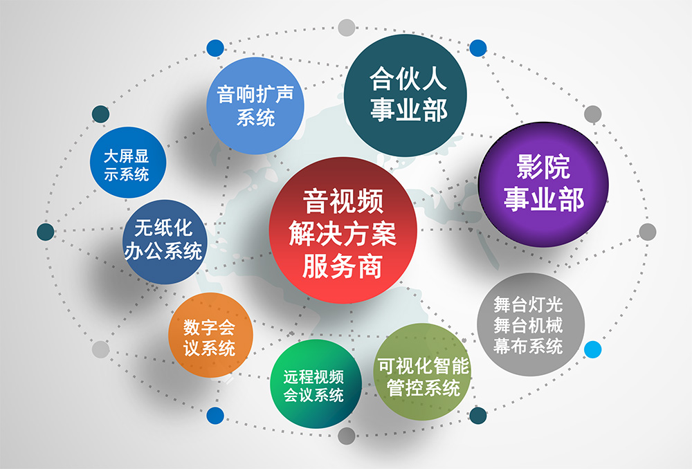 企業(yè)以音視頻解決方案服務(wù)和英嘉尼影院品牌為戰(zhàn)略方向,努力為全國(guó)128個(gè)城市提供專(zhuān)業(yè)化音視頻產(chǎn)品。