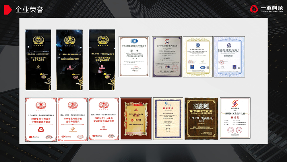 20年的音視頻行業(yè)經(jīng)驗(yàn)積累,獲得多項(xiàng)企業(yè)榮譽(yù)資質(zhì),行業(yè)項(xiàng)目施工資質(zhì),產(chǎn)品榮獲多項(xiàng)榮譽(yù)證書(shū)。