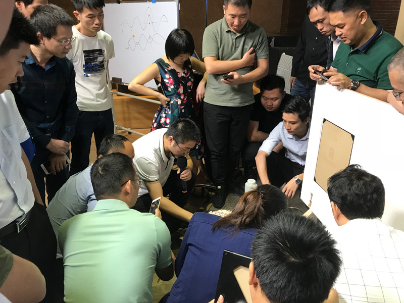 《家庭影院音箱布局及影院方案講解》與《產(chǎn)品安裝調(diào)試與實(shí)操》這兩門課程則由英嘉尼技術(shù)總監(jiān)朱文濤先生主講,涵蓋的影音知識(shí)面也十分廣泛。朱文濤先生結(jié)合大量實(shí)例,深入淺出地進(jìn)行講解,讓原本枯燥無味的專業(yè)技術(shù)課程也變得生動(dòng)有趣。在產(chǎn)品安裝調(diào)試與實(shí)操環(huán)節(jié),合作伙伴踴躍報(bào)名,積極參與產(chǎn)品調(diào)試。經(jīng)過一輪的實(shí)踐操作之后,都能很好地解決常見的影音設(shè)備安裝調(diào)試問題。