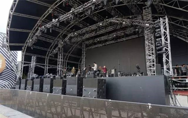 音樂節(jié)場地處于鬧市區(qū),附近有不少建筑物,況且主場地正后方就是香港大會堂,因此噪聲控制方面非常關(guān)鍵。工程師在前期設(shè)計時就對場地進行預(yù)測和計算,以便將噪聲對周邊環(huán)境的影響降到最低。Harbourflap和FWD兩個主舞臺相鄰,且舞臺結(jié)構(gòu)都呈貝殼形。主擴均采用了頂級的J-系列,電音舞臺主擴采用的是V-系列,而Club Minky劇場選用了Y-系列。