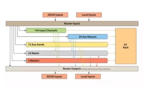 PROX系統(tǒng)可以實現(xiàn)多達168個全處理輸入通道和99條統(tǒng)一延時自動校正和相位一致的混音母線的處理能力,足以展現(xiàn)其強大的音頻處理能力。