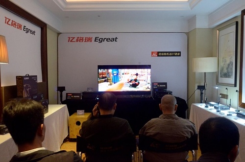 億格瑞展房搭建成多功能影視廳,房內坐滿了體驗觀眾,正在播放演示的是億格瑞A11--影院級4K藍光硬盤播放機。筆者加入現(xiàn)場體驗,A11播放影片畫質清晰色彩飽滿,播放高幀率動態(tài)畫面不卡頓,很流暢。