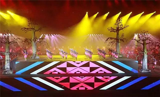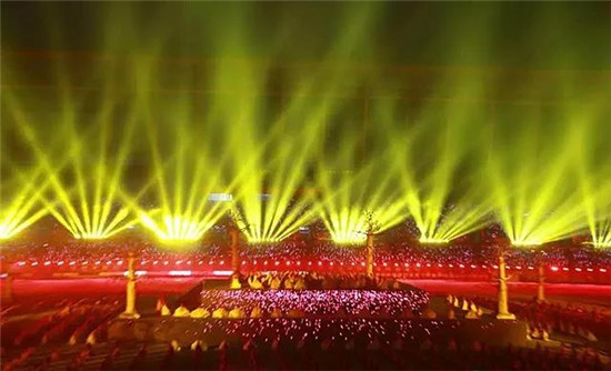 這次文藝演出采取超大型LED屏、聲光電技術和現(xiàn)場文體表演相結合的手法,將各種獨具崇左特色的文化元素呈現(xiàn)出來,珠江燈光尊能系列在這場精彩斑斕的視覺盛宴中起到了不可或缺的角色,充分展現(xiàn)了多彩的少數(shù)民族風情文化特色與魅力。