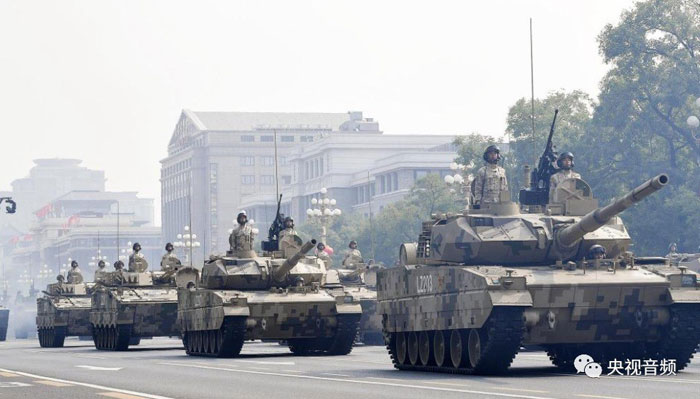 裝備方陣通過檢閱區(qū)