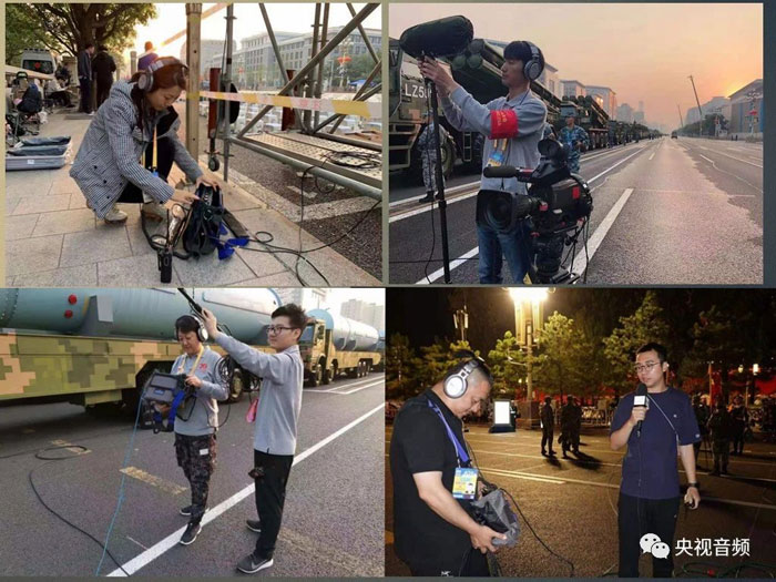 70周年國慶盛典是中央廣播電視總臺(tái)首次以4K+環(huán)繞聲模式直播的大型政治活動(dòng),也是第一次用5.1環(huán)繞聲直播的閱兵活動(dòng)。這次電視直播設(shè)計(jì)了一個(gè)總系統(tǒng)和ABCDEF六大分系統(tǒng)來共同完成制作,對(duì)于電視或者影院里的觀眾來說,您所聽到的環(huán)繞聲,是動(dòng)用了3個(gè)演播室、4套轉(zhuǎn)播系統(tǒng)、5輛錄音車,共計(jì)24張大中型調(diào)音臺(tái),外加20套便攜式調(diào)音臺(tái)共同制作完成的?,F(xiàn)場(chǎng)布置了近200支各類話筒,多軌錄制達(dá)到330通道,在廣場(chǎng)和沿線布設(shè)的各類音頻線纜長(zhǎng)度接近30公里,規(guī)模之大,前所未有。