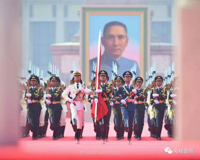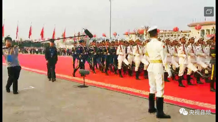 從儀仗隊(duì)第1方陣綿延到第22方陣,檢閱的全程達(dá)到3公里,聲音元素核心是主席與方陣之間檢閱和受閱的應(yīng)答。