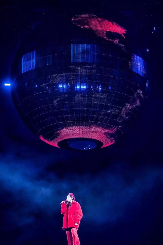 為了配合火星元素,本次演唱會舞臺中央以LED球作為設計中心,開場華晨宇從中緩緩降落,宛如從火星降落的少年,星球畫面隨現(xiàn)場氣氛變換,整個舞臺在視覺效果上像是漂浮的星空,浪漫奇幻。