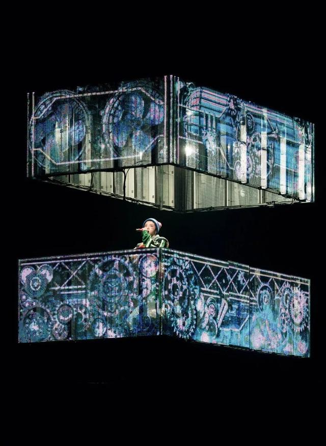 360°機械裝置舞臺的震撼效果,在這場演唱會你能體會到。超大面積屏幕,包括1080㎡雷凌顯示LX-T系列透明屏,另外還有地磚屏、折疊屏及碳纖維系列約1000㎡,同復雜的運動機械部件相結(jié)合,整個現(xiàn)場具備科技感與未來感。