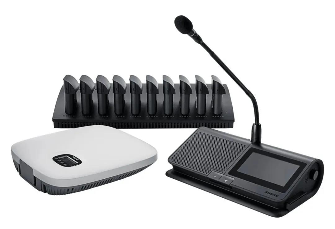 改造后的會議室集成了舒爾的MXCW解決方案,其中包括房間內(nèi)的16個MXCW640無線會議單元,每個會議單元都裝有MXC420DF / C電容式鵝頸話筒,最多可容納32位與會者。使用MXCWAPT接入點,在將無線信號提供給視頻和音頻會議之前,會將其通過Dante路由到IntelliMix?P300會議DSP處理器。