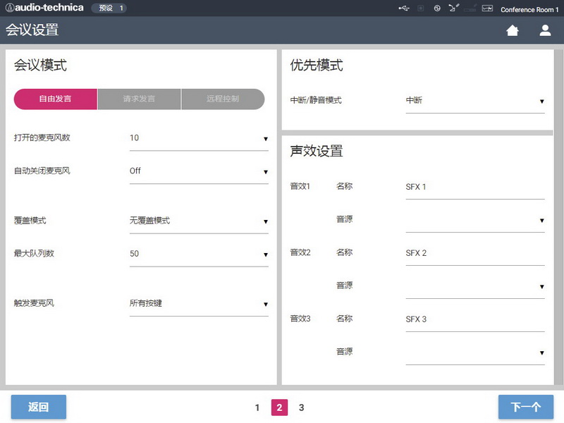 ?。╓eb Remote)控制,進(jìn)行會(huì)議控制、會(huì)議話筒底座設(shè)置網(wǎng)絡(luò)設(shè)置、音頻設(shè)置以及對(duì)會(huì)議進(jìn)行實(shí)時(shí)管理。