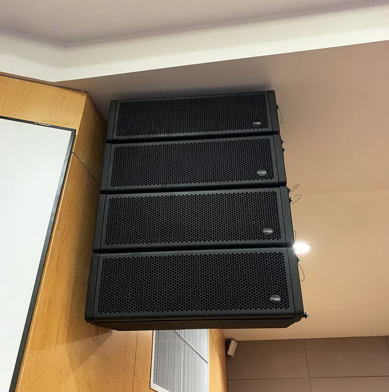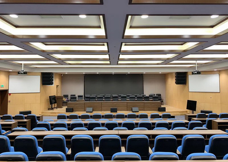 由于房間數(shù)量較多,根據(jù)每間的使用環(huán)境結(jié)合客戶需求及產(chǎn)品性能,最終為一層的學(xué)術(shù)報(bào)告廳、數(shù)字影像廳等共選用了20只C-208的8 "線性陣列音箱作為主擴(kuò)聲系統(tǒng),最大聲壓級(jí)高達(dá)135dB,所需的傾斜角度也擴(kuò)張到了最大使用范圍,內(nèi)部喇叭單元的安裝角度可滿足不同的場(chǎng)地使用需求,搭配C-15S的單15" 低頻音箱,該主擴(kuò)系統(tǒng)安全穩(wěn)定,操作簡(jiǎn)易,系統(tǒng)結(jié)構(gòu)更科學(xué)完善,是大型會(huì)議的品質(zhì)之選。
